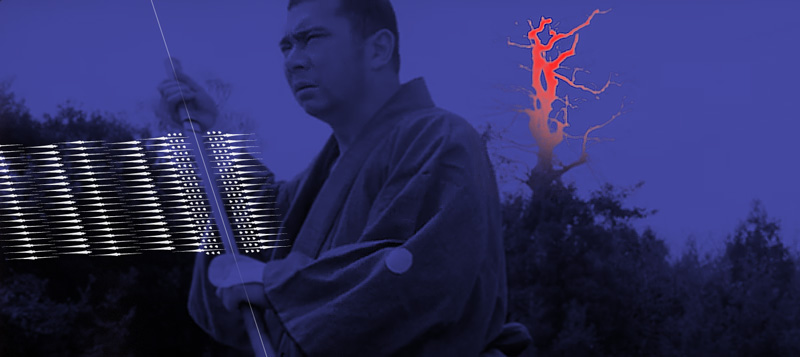 Sein Blindenstock ist ein Schwert, mit dem er alle Angriffe abwehrt, angeleitet von seiner hohen Intuition.